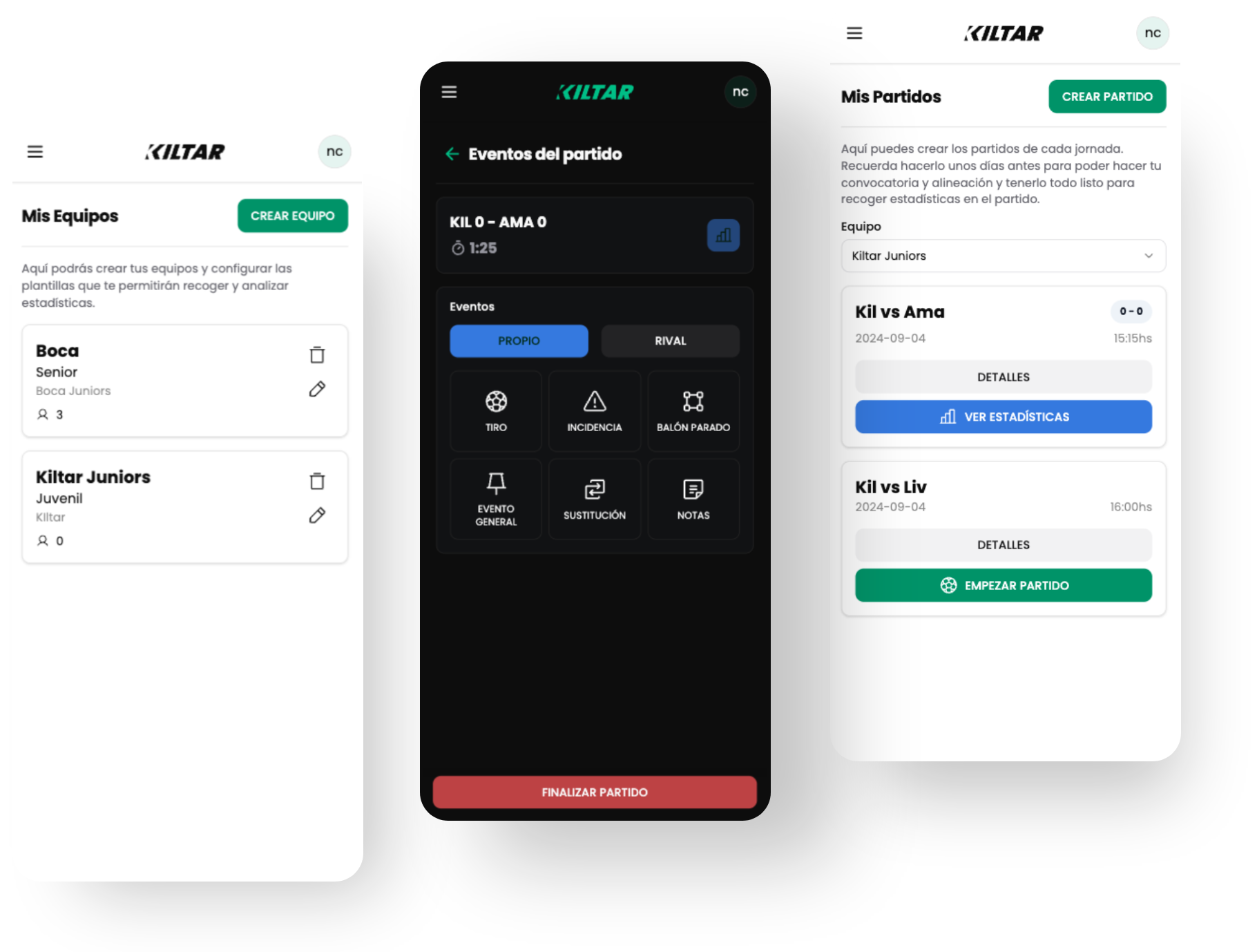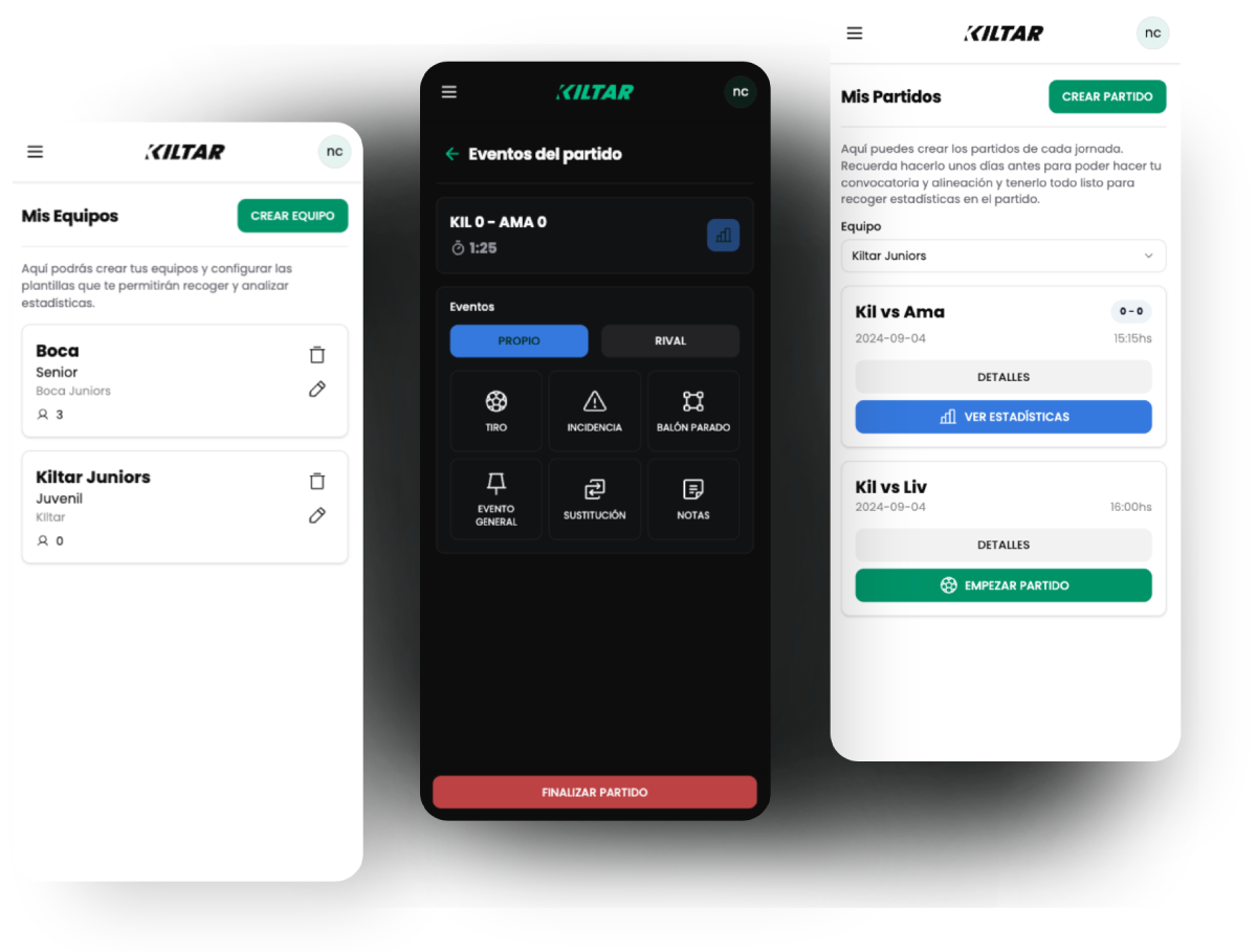 Puedes hacer que todo tu cuerpo técnico use Kiltar Fútbol, mantener el control de su rendimiento deportivo y visualizar las principales estadísticas (minutos, convocatorias, etc.) para compartirlas con las familias.